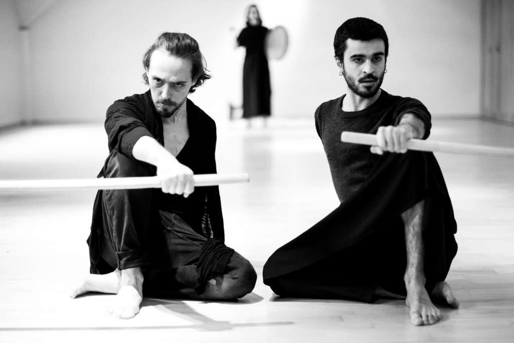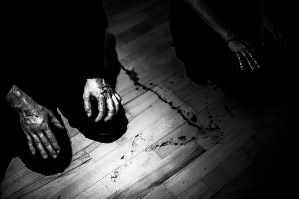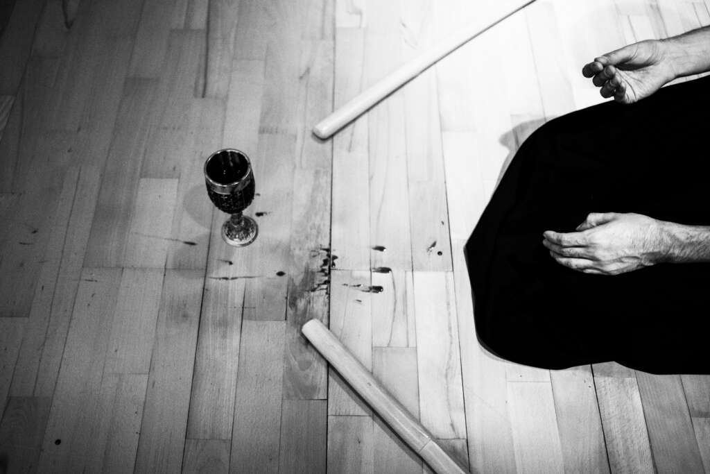Tworząc ten spektakl, poszukujemy współczesnego rytuału — obrzędu utkanego z ciała, głosu i tekstu; struktury, która mogłaby na nowo przywrócić sens pojęciom: wspólnota, odpowiedzialność, granica. Odprawiamy go, by zrozumieć, z jaką łatwością człowiek wchodzi w ciemność, gdy obiecuje mu się „więcej”, ale także po to, by spróbować odczarować i przekształcić rzeczywistość: wytrącić ją z mechanicznego biegu, naruszyć hipnozę, w której przemoc wydaje się koniecznością.